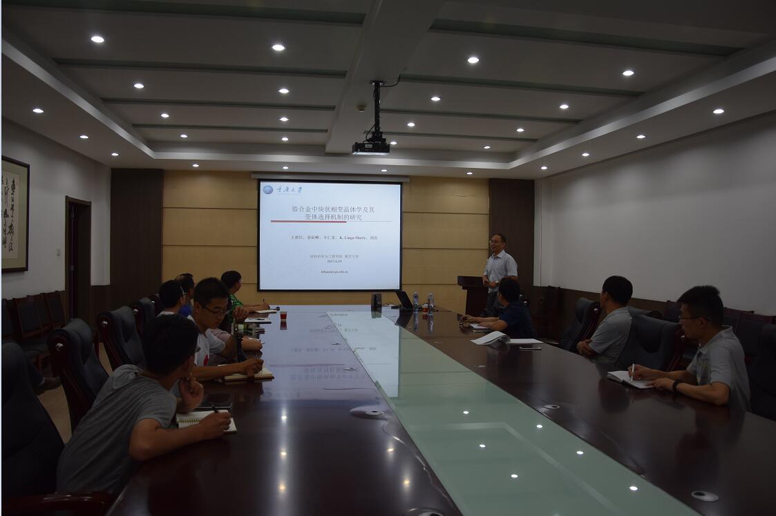 为促进中心学术交流, 中心特开展“现代轧制技术与先进钢铁材料协同创新中心 学术沙龙”活动,邀请国内外专家学者到中心进行学术报告交流。2017年6月19日,应中心邀请,重庆大学栾佰峰研究员在国家工程中心320会议室,作了题为“锆合金中块状相变的晶体学及其变体选择机制”的学术报告,中心和机械学院部分老师和师生参加了此次讲座。报告主要针对一种经过传统淬火工艺处理后的Zr-Cr-Fe合金,系统观察并深入分析了锆合金中块状相变的组织特征和晶体学特征。结果发现,与马氏体相变相似,块状相与母相之间同样符合Bergurs取向关系并具有明显的变体选择现象。基于现有的实验结果和相关理论,认为此块状相变过程中的形核与长大机制符合“取向形核”和“非取向长大”的物理模型,其变体选择具有“团簇”特征,并受淬火速率影响,从而丰富了块状相变的理论框架。