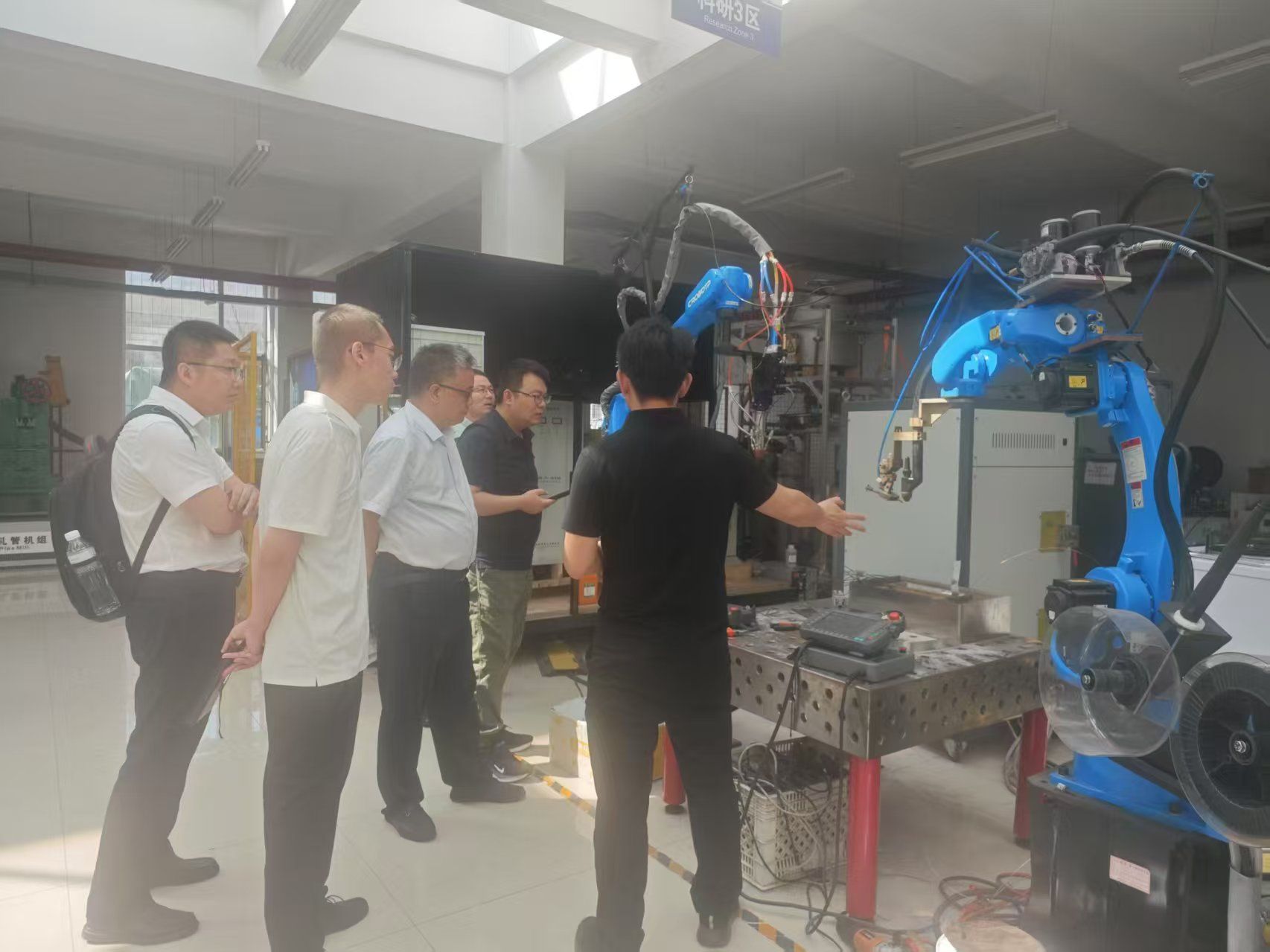 陈晋峰一行还参观了乌鸦传媒校史展览馆和国家工程中心中试车间。